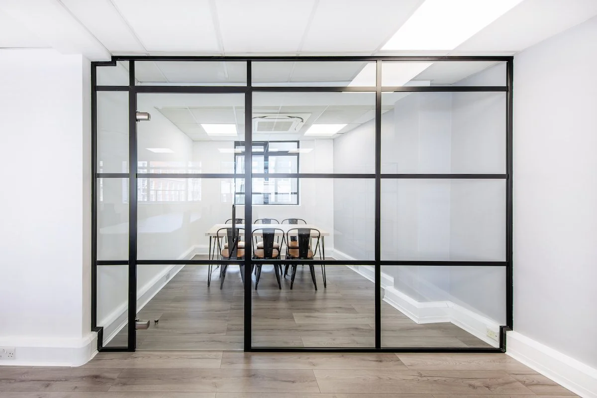 The space has a neutral monochrome colour scheme that can fit any overlayed brand identity. Frameworks supply all furniture, including desks, task chairs, meeting tables and lounge seating. We work with clients to customise their space in terms of layout and aesthetic.